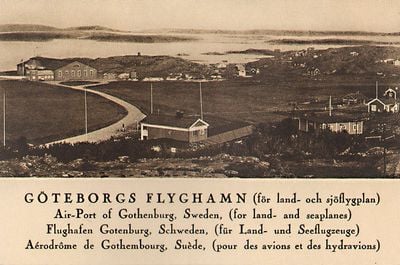 Kroonprins Gustav Adolf opende de luchthaven Torslanda op 4 augustus 1923 tijdens de Internationale Luchtvaarttentoonstelling in Göteborg.
