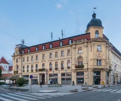 Het gebouw werd in 1896 voltooid, ontworpen door Tsjechische architecten in een periode waarin Celje een belangrijk regionaal centrum was. De constructie markeerde een moment van lokaal vertrouwen en institutionele ontwikkeling in de late 19e eeuw.