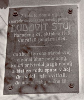Rodný dom Ľ. Štúra, tabuľa pamätná