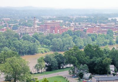 Marietta ligt op het punt waar de rivieren Ohio en Muskingum samenkomen, omgeven door straten met gebouwen uit de 19e eeuw en aangewezen historische wijken. De stad strekt zich uit over verschillende heuvels en vlakke oevers, waar woonwijken en parken de waterkant ontmoeten.
