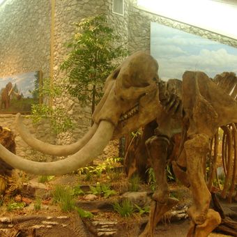 Het museum toont een levensgrote replica van een mastodontskelet, oude artefacten en fossielen van de eerste gedocumenteerde indianenlocatie in het parksysteem.