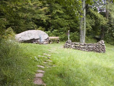 Een rots op het terrein heeft een dubbele betekenis: het was waar John Burroughs als kind speelde en later zijn begraafplaats werd. Deze verbinding tussen jeugdherinnering en eeuwig rust maakt de steen een ontroerend oriëntatiepunt.