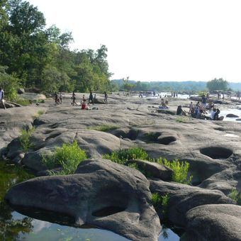 Belle Isle is een eiland van 54 hectare in de James River met overblijfselen van granieten steengroeven, industriële gebouwen en wandelpaden die door bosrijke gebieden slingeren. Het landschap toont verschillende lagen van stenen funderingen en puin achtergelaten door eeuwen van menselijke activiteit op deze plaats.