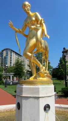 De Darlington Memorial Fountain is een bronzen fonteinbeeldhouwwerk op het Juridisch Plein in Washington D.C., met een vergulde nimf naast een jonge hinde op een marmeren sokkel, met water dat uit zijdelingse spuiten stroomt.