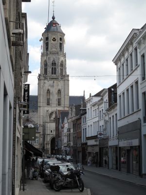 De bouw van deze Brabantse gotische kerk begon in 1378 en duurde tot 1540, waar Filips de Schone en Johanna van Castilië in 1496 trouwden.