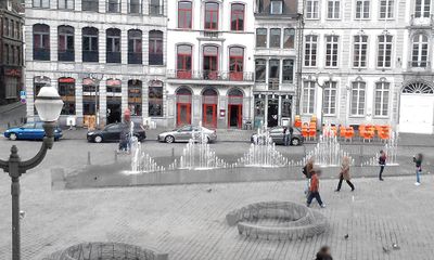 Een fonteinsysteem met 92 waterstralen creëert patronen op het plein en voegt beweging toe aan deze eeuwenoude ontmoetingsplaats.