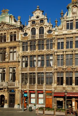 De Maison du Sac toont een barokke gevel met gedetailleerde sculpturen van Laurent Merckaert en Peter Van Dievoet die de vierlaagse structuur versieren.