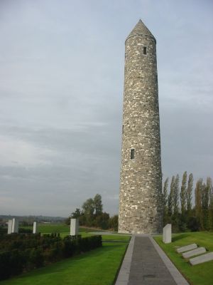 Het monument bestaat uit een traditionele ronde toren, stenen markeringen en een pad met negen gedenkplaten met citaten van Ierse soldaten.