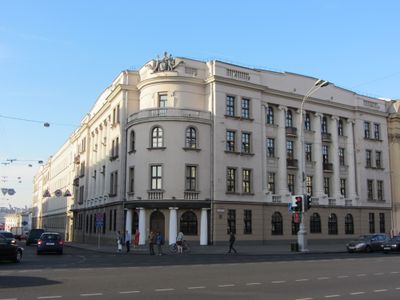 Gelegen op coördinaten 53.898306, 27.553594 aan de Niezaliežnasci-laan, behoudt het gebouw zijn status als cultureel erfgoedmonument van Wit-Rusland.