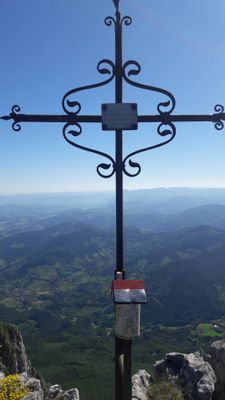 De Aitxuri-piek verheft zich tot 1508 meter in het Aizkorri-gebergte, met steile kliffen en rotsachtige uitsteeksels langs de hellingen.