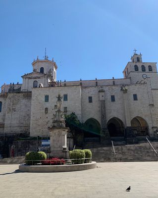 De bouw begon eind 12e eeuw op de plaats van een voormalige abdij en kreeg in 1754 de status van kathedraal onder het bisdom Santander.