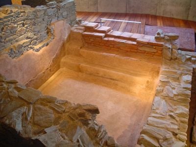 De Romeinse villa bevat bewaarde thermische baden met tongewelf plafond en collectieve latrines verbonden door een drainagesysteem.