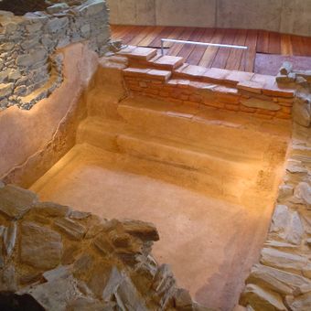Het archeologisch museum verdeelt zijn tentoonstelling in twee delen: een met verklarende panelen en artefacten, een ander met architectonische overblijfselen.