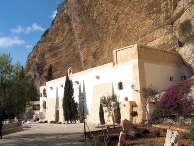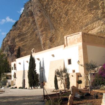 Het heiligdom staat onder de Penya Falconera-klif van de Puig de Randa-berg, met een eenbeukige kerk en zijkapellen.