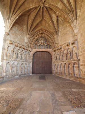 De Santa María la Real kerk heeft een enkel schip verdeeld in vijf secties met ribgewelven en vakkundig bewerkt steenhouwwerk.