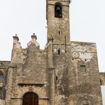 De vierkante toren bevat mogelijk de basis van een oude islamitische minaret, bekroond met een barokke spits met afbeeldingen van de Verlosser.