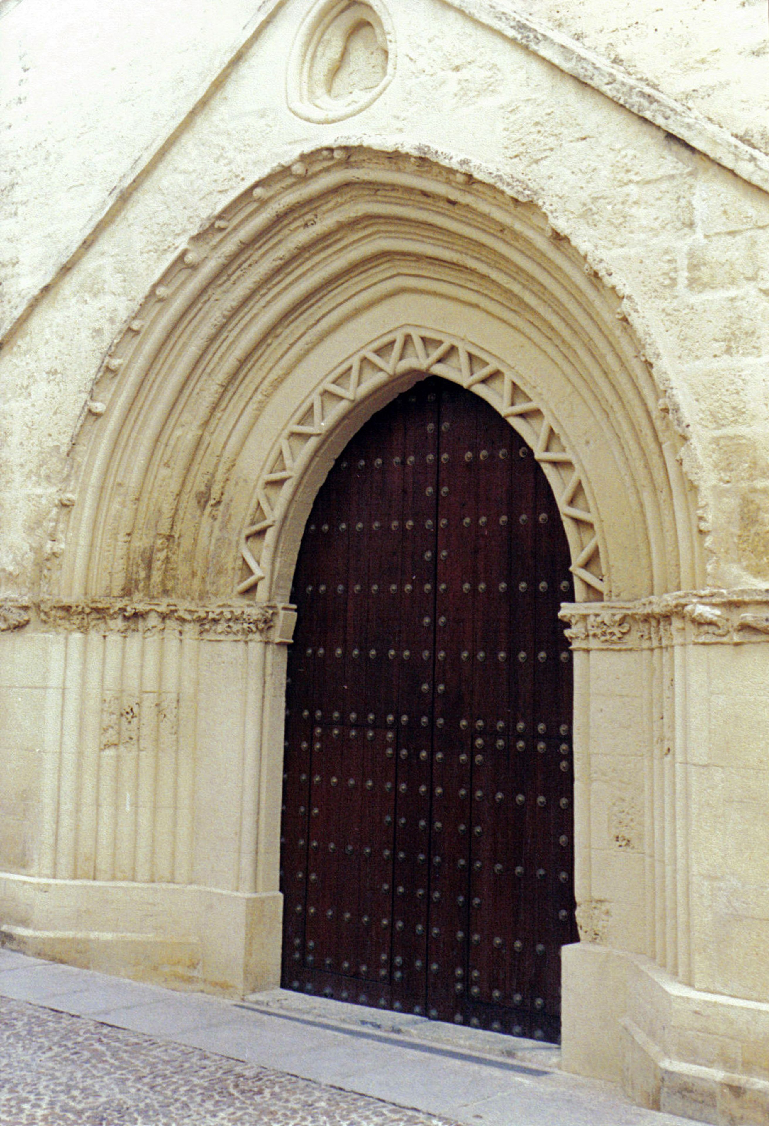 De zuidelijke portaal bevat de oudste kerkingang in Córdoba, versierd met puntige diamantpatronen in een alfiz-frame.
