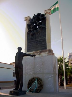 Het monument toont bronzen duiven die opvliegen en inscripties over de Andalusische identiteit, gemaakt door beeldhouwer Sebastian Santos Calero.