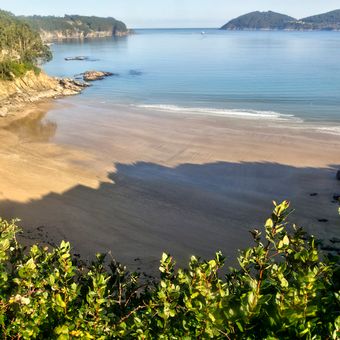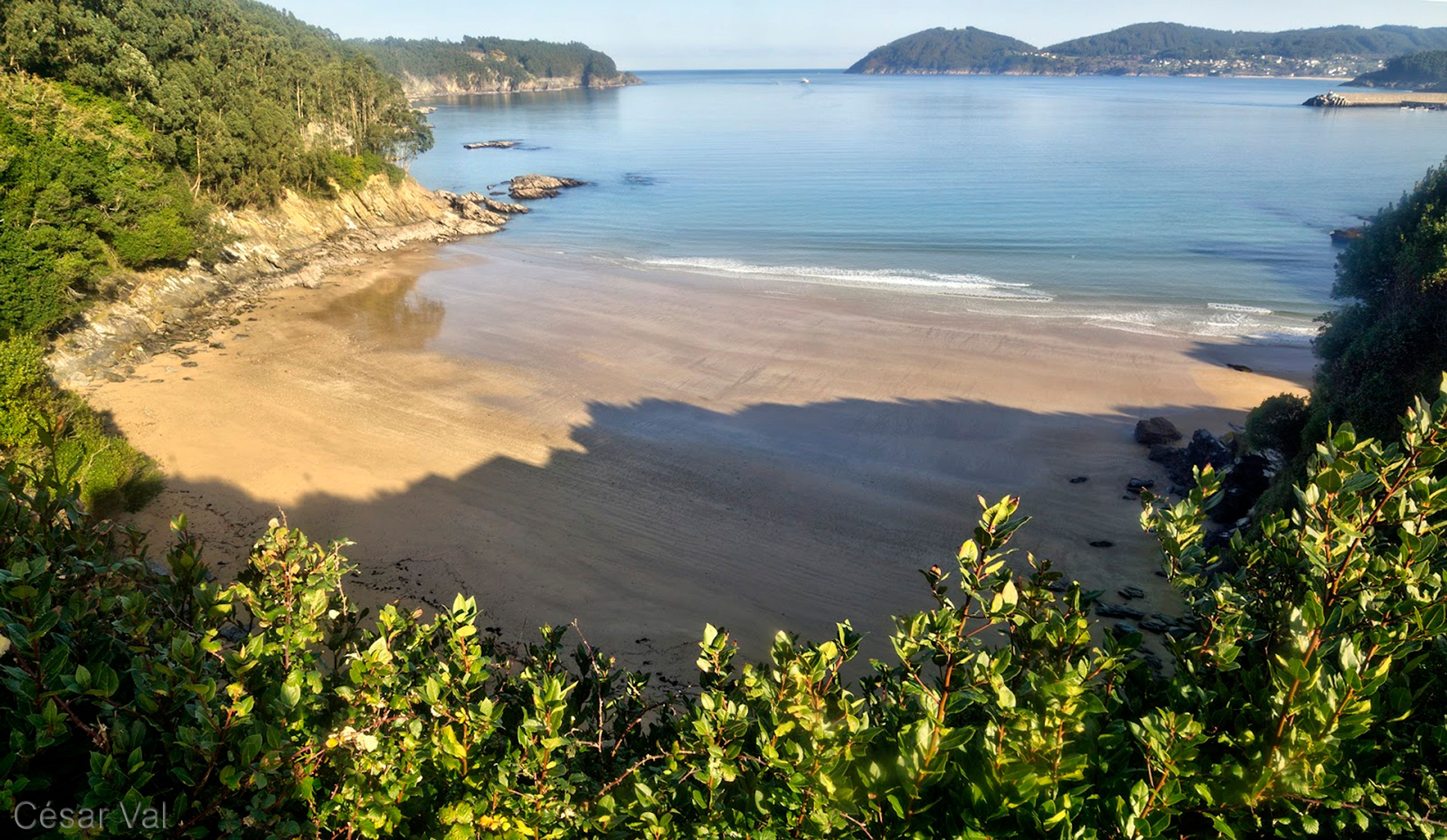 Het Playa de Sacido strekt zich uit over 130 meter langs de Galicische kust, met helder wit zand omgeven door lage kliffen.