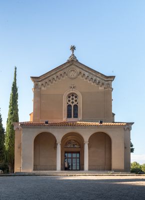Het heiligdom met eclectische architectuur staat op 226 meter hoogte met een modernistische klokkentoren en sculpturale decoraties van Enric Monjo en Camil Fàbregas.