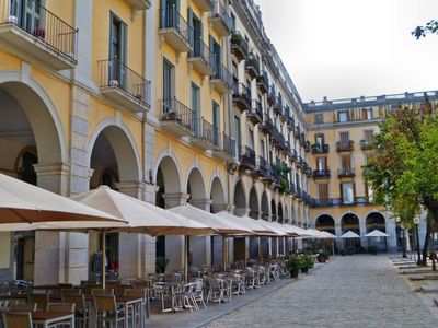 Plaça de la Independència, Neoclassicistisch plein in Girona, Spanje.