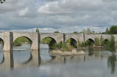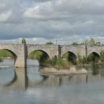 De brug overspant de Pisuerga rivier met negen stenen bogen en driehoekige ijsbrekers tussen de pijlers.