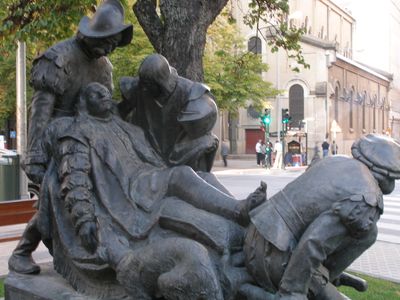 Het beeld markeert de plaats waar Sint Ignatius de verwonding opliep die leidde tot zijn spirituele transformatie en de oprichting van de Jezuïetenorde.