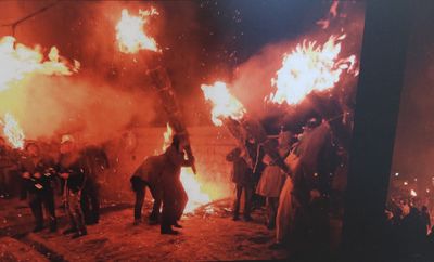 Los Escobazos, Vuurfeest in Jarandilla de la Vera, Spanje.