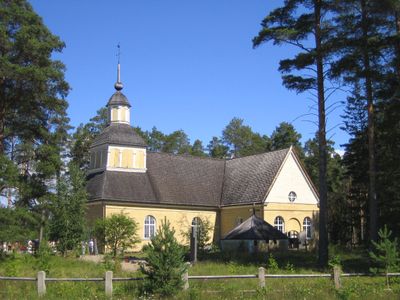 Een gedenksteen ter ere van het Kalevala-epos staat voor de kerk en markeert de historische verbindingen tussen de regio's Kainuu en Karelië. Deze steen herinnert aan de mythologische traditie die diep in deze landen wortelt.