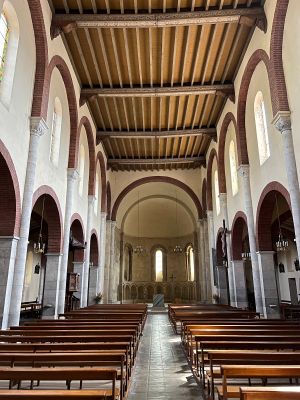 De Église Saint Paul is een romaanse kerk met massieve stenen muren, halfronde bogen en een symmetrische middeleeuwse indeling. Het gebouw heeft tongewelven, dikke dragende muren en kleine raamopeningen die typisch zijn voor deze architectuurstijl.