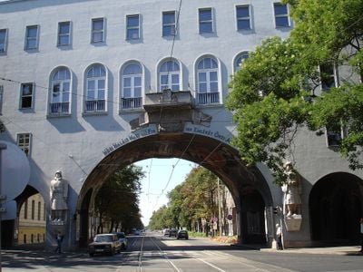 De Porta Heroum is een neoklassiek poort in Szeged met evenwichtige zuilen, beeldhouwwerk en monumentale proporties. Het vormt een opvallende doorgangsruimte tussen verschillende wijken.