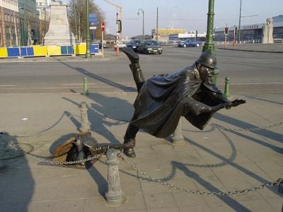 De Belgische kunstenaar Tom Frantzen creëerde dit bronzen beeld in 1985 en plaatste het voor het gebouw van de Franse Gemeenschap in Sint-Jans-Molenbeek.