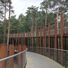 De structuur bevat cortenstalen pilaren die het omringende dennenbos weerspiegelen en zorgen voor integratie tussen infrastructuur en natuurlijke omgeving.
