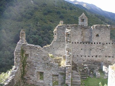 Mesocco Castle, Middeleeuwse kasteelruïne in Mesocco, Zwitserland.