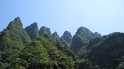 Shidu is een karstenlandschap in het Fangshan-district met opvallende rotsformaties en een rivierkloof. Het gebied vertoont indrukwekkende geologische structuren met grotten, hoge kliffen en boeddhistisch beeldhouwwerk op berghellingen.