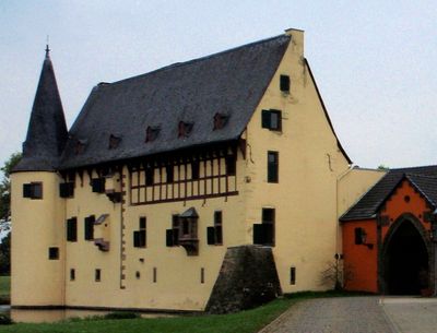 Burg Langendorf, Middeleeuws waterkasteel in Zülpich, Duitsland.
