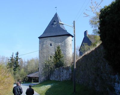 Het landgoed Rittergut Schöller heeft een vierkante donjon met ronde traptoren en delen van de oorspronkelijke kasteelmuur in kalkstenen metselwerk.