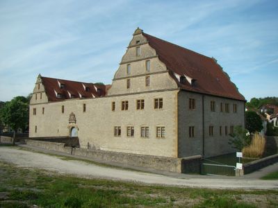 Schloss Presteneck, Renaissance waterkasteel in Stein am Kocher, Duitsland.
