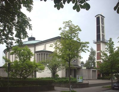 Het gebouw bevat architectonische elementen die de Duitse naoorlogse kerkelijke architectuur weerspiegelen, met specifieke raamindelingen en structurele kenmerken.