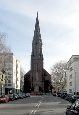 De kerk heeft een opvallende torenspits van 70 meter hoog en staat aan de westelijke rand van het centrale district van Bochum.