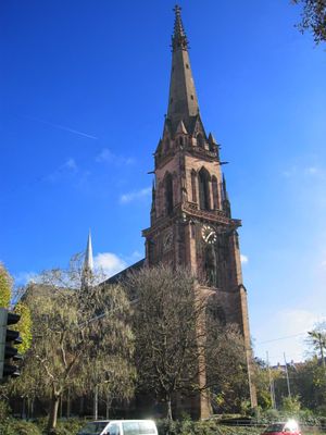 St. Bernhard is een parochiële kerk in de wijk Oststadt van Karlsruhe gebouwd in neogotische stijl met rode zandstenen muren en een kruisvormig grondplan. Het gebouw onderscheidt zich als een verticaal oriëntatiepunt met verfraaide buitendetails en meerdere torens die de compositie omarmen.