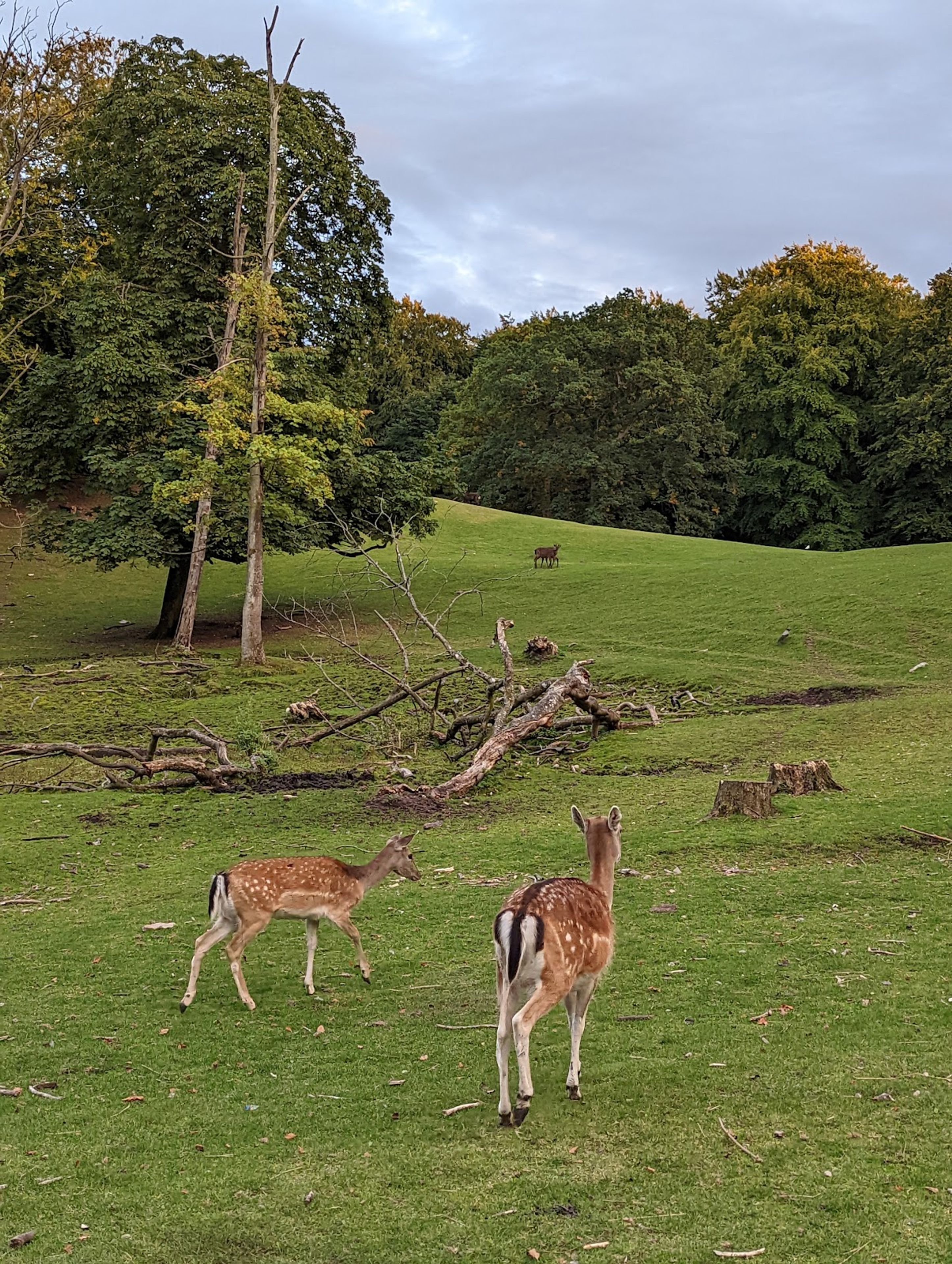 Het 22 hectare grote bosgebied met verspreide bomen en heuvels biedt natuurlijke leefgebieden voor verschillende hertensoorten en wilde zwijnen.