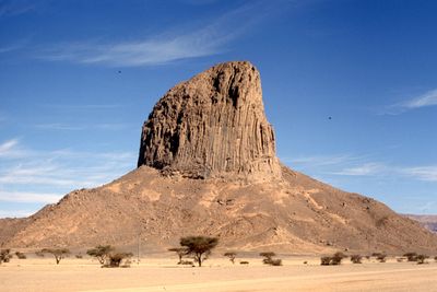 De berg getuigt van geologische formaties die miljoenen jaren teruggaan en het landschap van de Sahara-hooglanden door verschillende tijdperken vormden.