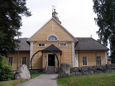 De witte houten kerk staat nabij het centrum van Nastola met een vrijstaande klokkentoren en vertoont traditionele Finse architectonische elementen.