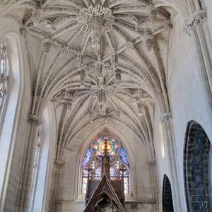 De Heilige Geest Kapel toont hoge gewelven versierd met hangende sleutels en gedetailleerd steenhouwerk in haar drie architectonische secties.