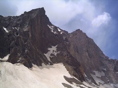Alam-Kuh stijgt tot 4.848 meter in het Alborz-gebergte van noordwest-Iran en is de op een na hoogste piek van het land. De steile noordzijde toont granieten rotsformaties die variëren in kleur en textuur, wat meerdere klimroutes van verschillende moeilijkheidsgraden creëert.