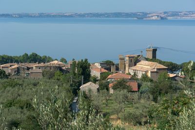 Bolsena ligt op 350 meter boven zeeniveau aan de oostelijke oever van het grootste vulkanische meer van Europa, omringd door heuvels.