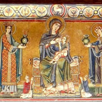 Santa Maria in Trastevere uit de 4e eeuw staat als centraal religieus monument met gouden mozaïeken die de binnenmuren versieren.