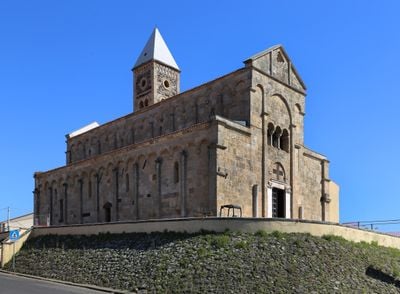 De Kathedraal van Santa Giusta is een romaanse kerkgebouw in het kleine stadje Santa Giusta op het eiland Sardinië met een driedelig zandstenen gevel. De centrale ingang wordt bekroond door een drievoudig raam, en de timpaan erboven is onderverdeeld in verschillende secties.
