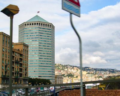 De Matitone wolkenkrabber rijst 109 meter op in de skyline van Genua, met een potloodvormige structuur die 24 verdiepingen telt.